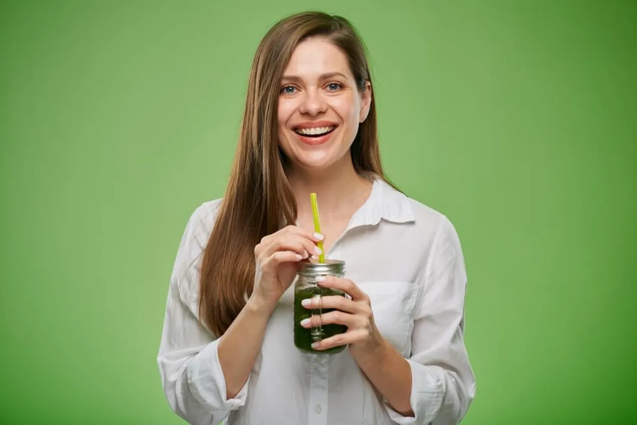 1. Green "smoothies" contain a lot of nutrients that stimulate and support digestion. They usually consist of an equal amount of green leafy vegetables (spinach, kale, lettuce, celery and wheatgrass) and fruit (banana, strawberries, pears or blueberries). Some liquid goes into this mixture, for example milk, yogurt or water.